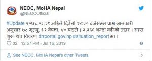 मन्त्रालयको पछिल्लो तथ्याङ्कअनुसार असार २६ गतेदेखि परेको अविरल वर्षापछि आएको बाढीपहिरोमा परेर १७ हजार ४२० घरधुरी विस्थापित भएका र तीन हजार ३६६ जनाको उद्धार गरिएको गृह मन्त्रालयको राष्ट्रिय आपत्कालीन कार्य सञ्चालन केन्द्रका प्रमुख वेदनिधि खनालले बताए ।