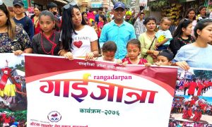 साउन ३१ , काठमान्डौ – आज देशभर विभिन्न कार्यक्रम गरि गाईजात्र पर्व मनाईएको छ। विभिन्न जिल्लाबाट आ आफ्ना संकृति परम्परा अनुसारका झाँकी प्रस्तुत गर्दै गाईजात्रा पर्व मनाईएको हो ।
