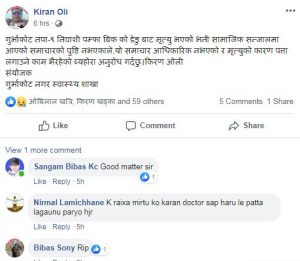 गुर्भाकोट नगर स्वास्थ्य शाखा संयोजक किरण ओलीको स्टाटसमा रंग दर्पणको गम्भीर घोर आपतिrangadarpan