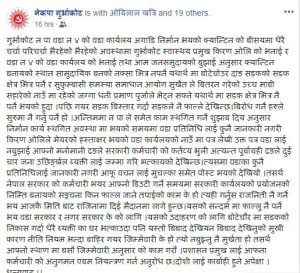 उनले यो विषयमा आफु चोखो हुन वडाका कुनै प्रतिनिधिलाई जानकारी नगरी मुचुल्का समेत पोस्ट भयको खुल्न आएको छ ।