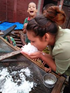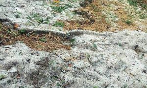 बाटो घर बारी जता ततै असिना परेको र असिनाले घर का छत् ढाकेको छ ।