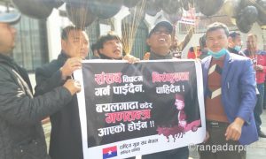 माघ ८ ,काठमान्डौ – राष्ट्रिय युवा संघ नेपाल केपी ओलीको असंवैधानिक संसद विघटनविरुद्द पेरिसडाँडाबाट कालो बेलुन उडाएर विरोध गरेको छ। संघले संसद विघटन गर्न पाईदैन ,बयलगाढा चढेर गणतन्त्र आएको हैन ,निरंकुशता चाहिदैन लेखको ब्यानर सहित काम चलाउ प्रधानमन्त्री केपी शर्मा ओलीको विरोध गरेको हो।