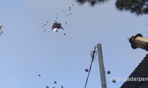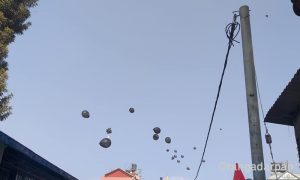 प्रतिगमनकाविरुद्द युवासंघले पेरिसडाँडाबाट उडाएको कालो बेलुन वालुवाटार पुगेपछि खैलाबैला ,,