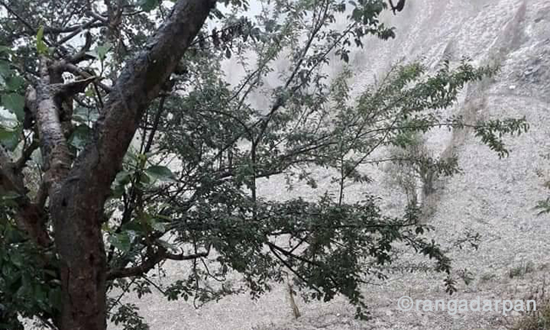 दैलेखको नौमुले ६ सल्लेरीमा आज परेको असिना ,तस्विर :किशोर सुवेदी ,