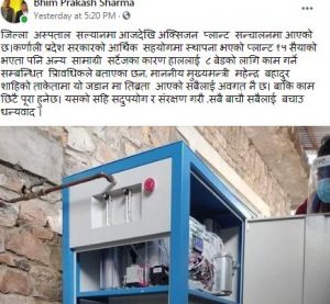 जिल्ला अस्पताल सल्यानमा जडान गरिएको अक्सिजन कन्सन्ट्रेटमा ५० लाख भ्रस्टाचार