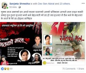 , मैले एसमा नत पारिश्रमिक लगेको छु नत सहमति ।, र मलाई कुनै जानकारी पनि भयन , यसको स्पस्ट जानकारी र मेरो सिर्जनामा किन अरुको नाम र फोटो राखियो यसको क्षतिपूर्ति पाँउ भन्दै उनले आफ्नो सामाजिक संजाल फेसबुकमा लेखेकी छिन ।