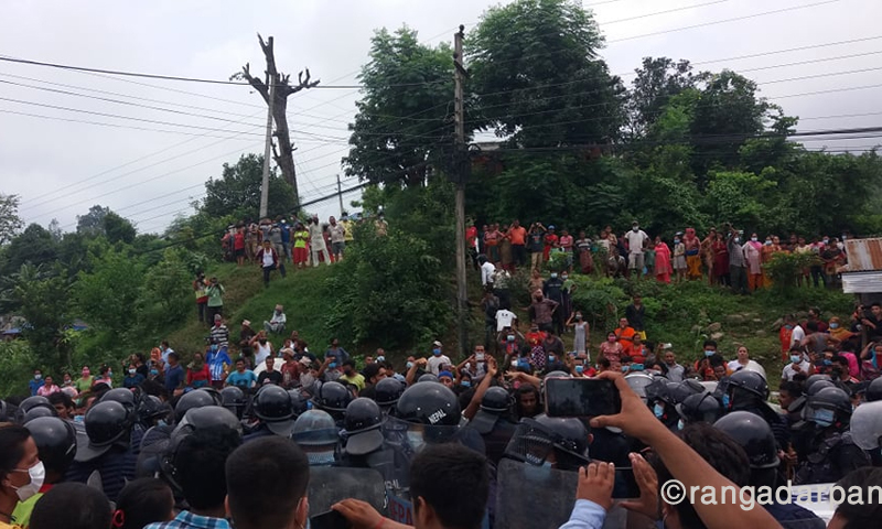 प्रहरीले शवलाई अस्पताल लैजादै गर्दा आफन्त र स्थानीयवासीले नाराबाजी गर्दै राजमार्ग अवरुद्ध गरेका हुन । स्थानीयवासीले ट्रक बाटोमा तेर्साएर सडक अवरुद्ध गरेको छन् भने प्रहरीविरुद्द नाराबाजी गरेका छन्।