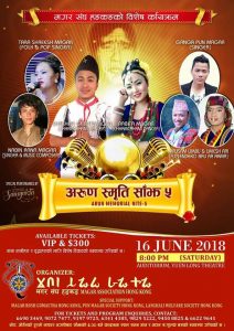 , उनीहरुलाई सांगेतिक कार्यक्रमको लागि हङ्कङ् बोलाईयको हो। अरुण स्मृति साँझ ५ ले आयोजना गरेको सांगीतिक कार्यक्रममा मगर संघ बाट उनीहरुलाई निमन्त्रणा गरियको हो ।,