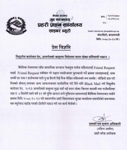 माघ १४, काठमाण्डाै – विदेशमा रहेर नेपालमा महिलालाई विभिन्न गाली गलौज गर्ने र बल्याकमेल गर्ने एक व्याक्तीलाई प्रहरीले त्रिभुवन अन्तर्राष्ट्रिय विमानस्थल काठमाण्डौबाट पक्राउ गरेको छ।