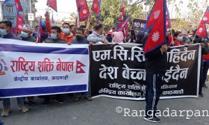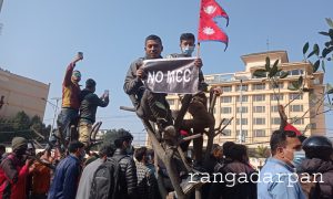 काठमान्डौ- एमसीसी रद्द गर्न माग गर्दै आज काठमाडौंको नयाँवानेश्वरमा प्रदर्शन भएको छ। छ दल र दुई मोर्चाले गरेको संयुक्त आन्दोलनमा केहि छिन प्रहरी र प्रदर्शनकारी बीच झडप समेत भएको थियो।