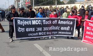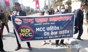 प्रदर्शनकारीले प्रधानमन्त्री शेरबहादुर देउवा र एमाले अध्यक्ष केपी ओलीविरुद्द नाराबाजी गरेका थिए । एमसीसी चाहिदैन ,देश बेच्न पाईदैन गो ब्याक एमसीसी लेखिएक ब्यानर सहित उनीहरुले बिशाल प्रदर्शन गरेका हुन्।