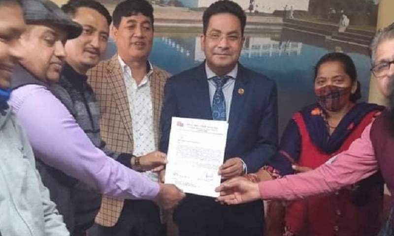 एमसीसीको विरोधमा अखिल भारत नेपाली एकता मञ्चले राजदूतावासमा बुझायो ज्ञापनपत्र