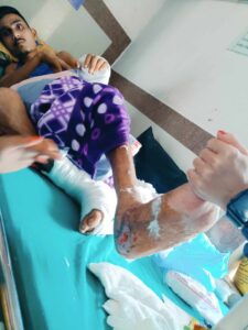 घरबाट खस्दा बेहोस अवस्थामा रहेका उनलाई कम्पनीले केही उपचार गरि नेपाल फर्काईएको थियो । हाल उनको काठमान्डौ स्थित ट्रमा सेन्टरमा उपचार गराईरहेका छन।उनको दुवै खुट्टा र हात भाचीएका छन।