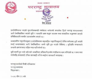 परराष्ट्रले बुधबार मन्त्रालयबाट जारी विज्ञप्तिमा भएको त्रुटी र आमसञ्चार माध्यम तथा सामाजिक सञ्जालमा आएका प्रतिक्रियाप्रति गम्भीर ध्यानाकर्षण भएको भन्दै यस्तो उल्लेख गरेको हो ।